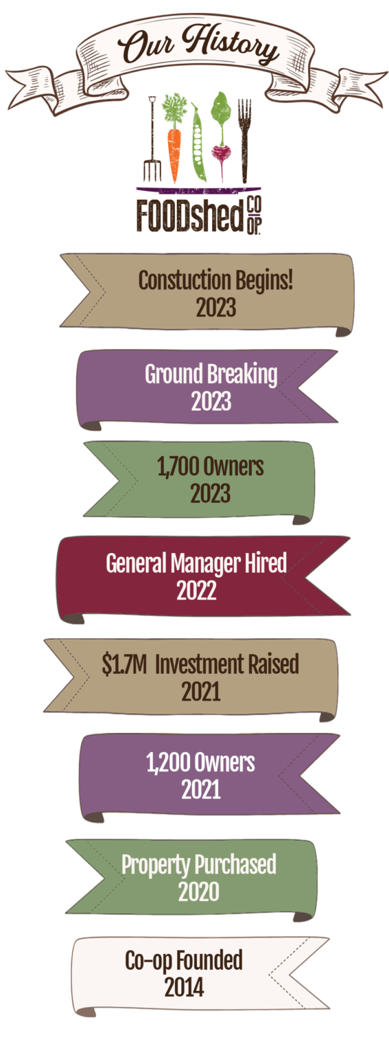 To honor the dedication and all of the hard work contributed by hundreds of owner-member volunteers, who have tirelessly worked to bring the Food Shed Co-op to McHenry County, please consider becoming a FOUNDING owner-member before the store opens and make your plans to shop often at the Food Shed Co-op when we open in 2024.